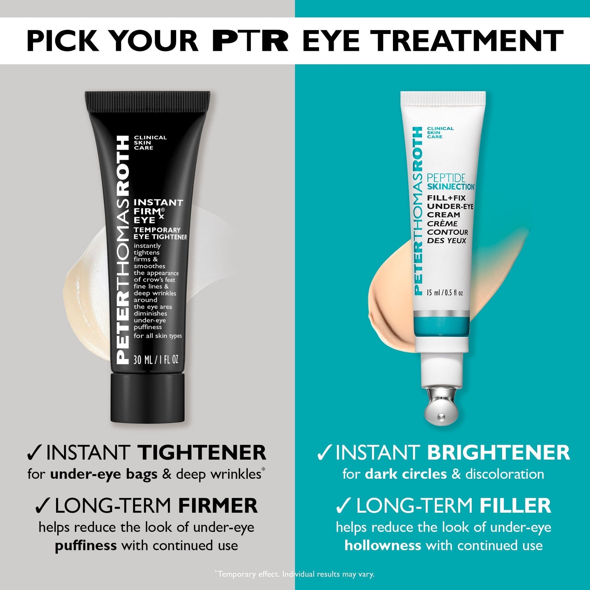 PETERTHOMASROTH CLINICAL SKIN CARE PEPTIDE SKINJECTION™ Fill + Fix Under-Eye Cream is a non-invasive eye cream that provides a needle-free filler effect, helping to reduce the look of under-eye hollowness, darkness and fine lines. Powered by clinically advanced 4% Peptilift peptide technology, 3% Juveneye CLR™ and Hyaluronic Acid Filling Spheres.